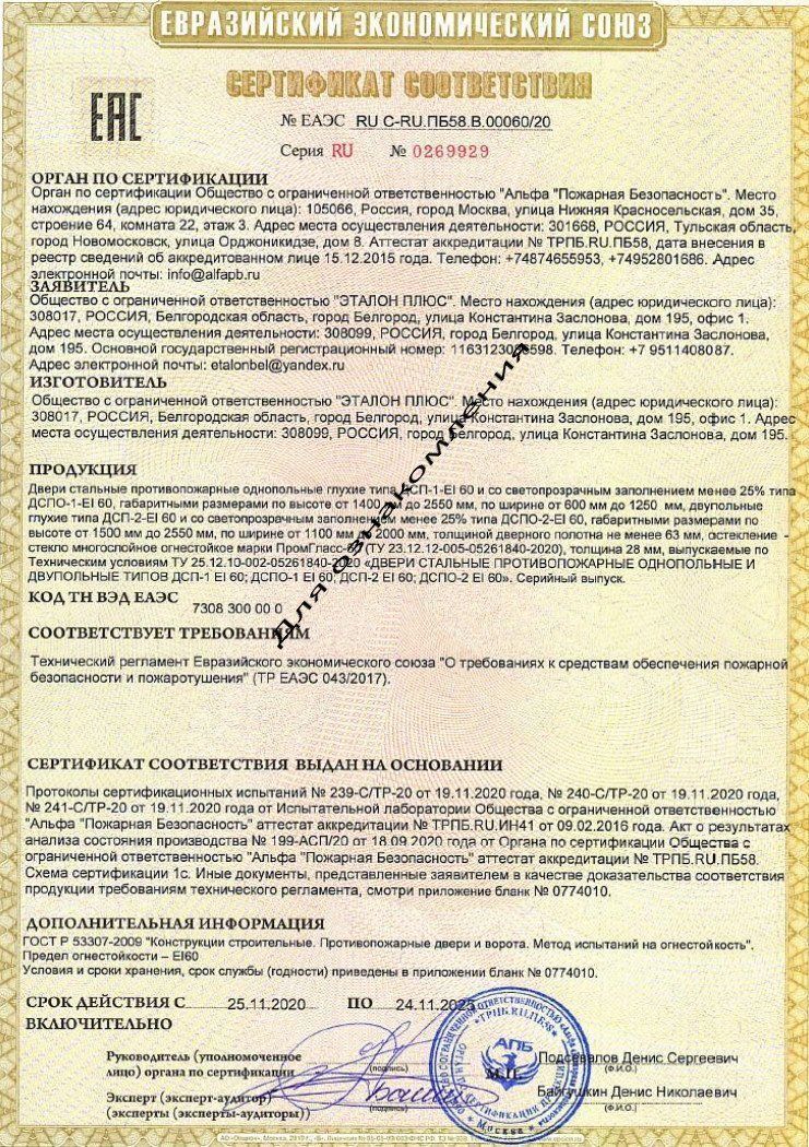 Противопожарная дверь ДМП-01-EI60-900*1600 (сплошного сечения), цена 24 783 руб. руб. купить в Иркутске