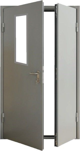 Дверь техническая, металл 1,2мм, двухстворчатая 1280*2080мм., левая со стеклом — купить в Иркутске в компании RosDoor (Сталь-сервис)