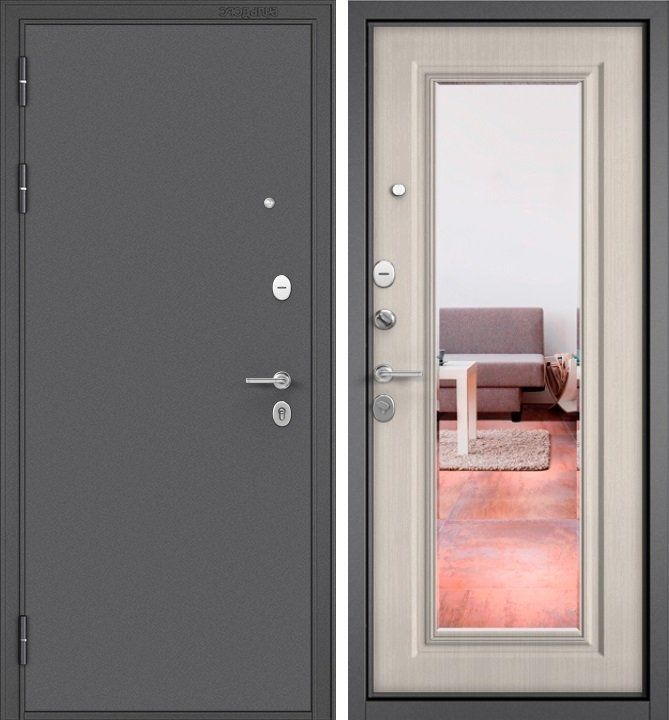 Артикул Дверь стальная Мастино TRUST MASS 140 Графит букле-Ларче бьянко, зеркало 860 левая