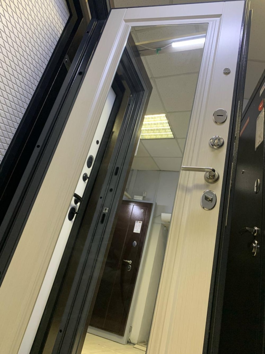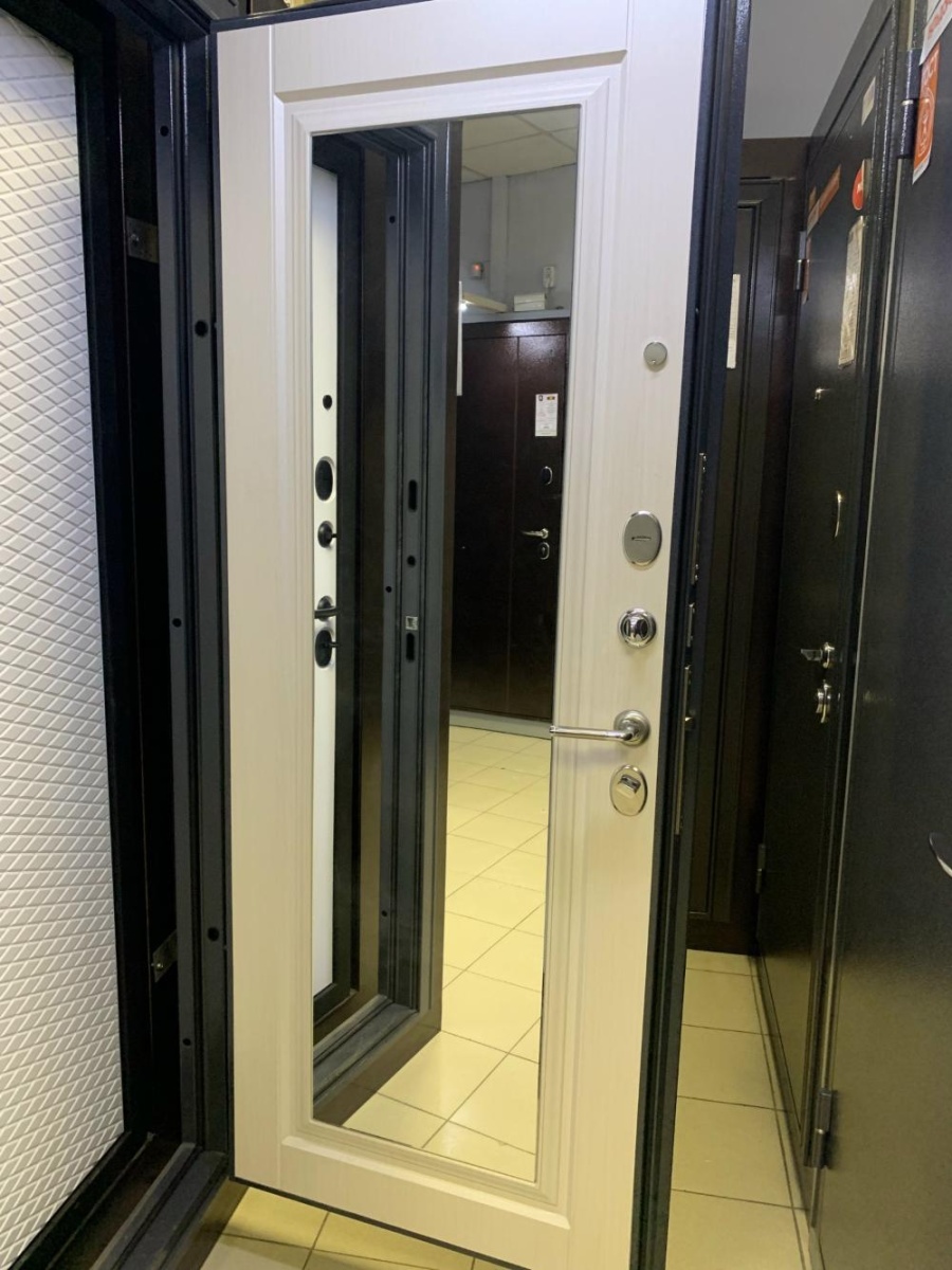 Артикул: Дверь стальная Мастино TRUST MASS 140 Графит букле-Ларче бьянко, зеркало 860 левая