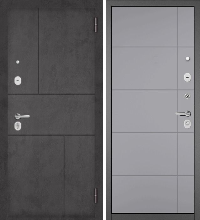 Артикул: Дверь стальная Мастино TRUST ECO 182/193 Бетон графит/Антрацит букле-Гриджио, черн. кв. 860 правая