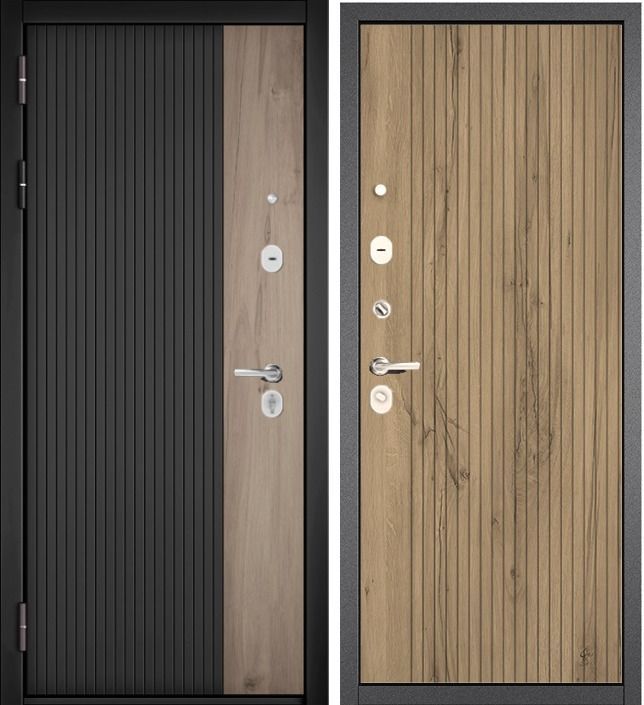 Артикул: Дверь стальная Мастино TRUST ECO 401/161 Черный мат.-ДГМ/Антрацит букле-Дуб галиф. мед, черн 860 лев