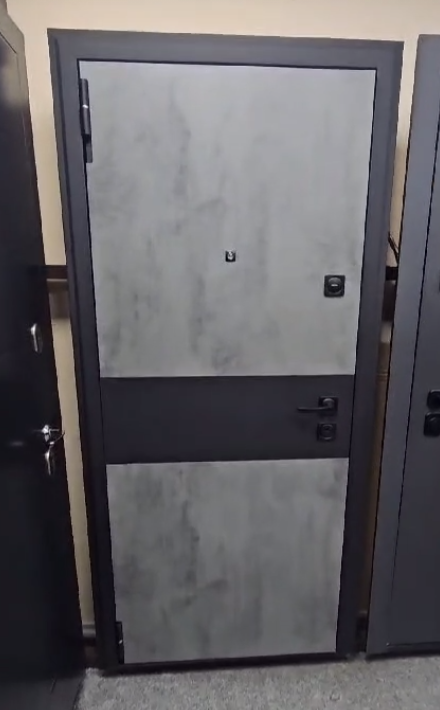Входная дверь (ВИДЕО) Лофт Бетон Черный Муар МДФ Бетон темный - Бетон светлый — купить в Иркутске по цене 30 800 руб. — RosDoor (Сталь-сервис)