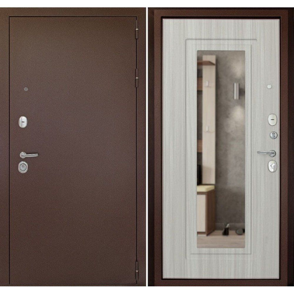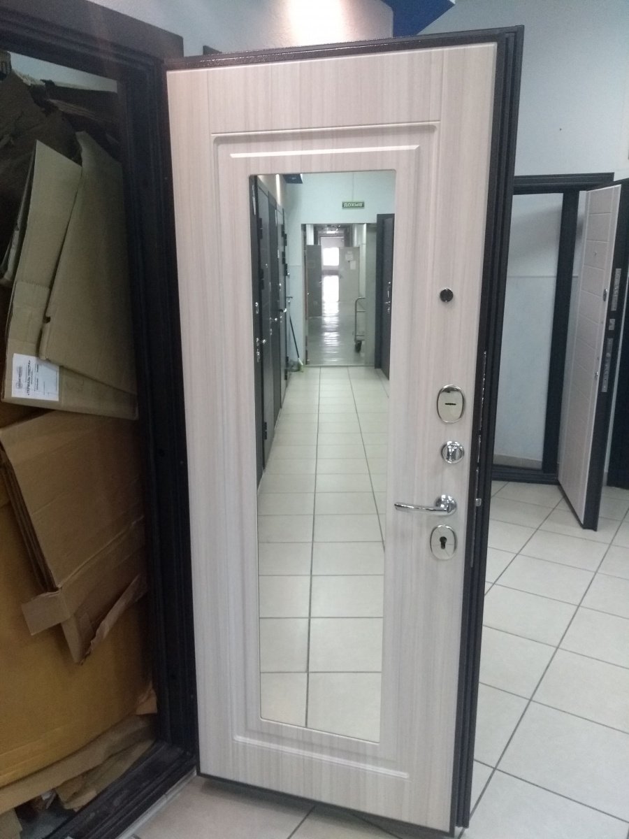 Входная дверь Дверной континент Рубикон БЗ (зеркало) Белый сандал, цена в Иркутске 24 590 руб. — RosDoor (Сталь-сервис)