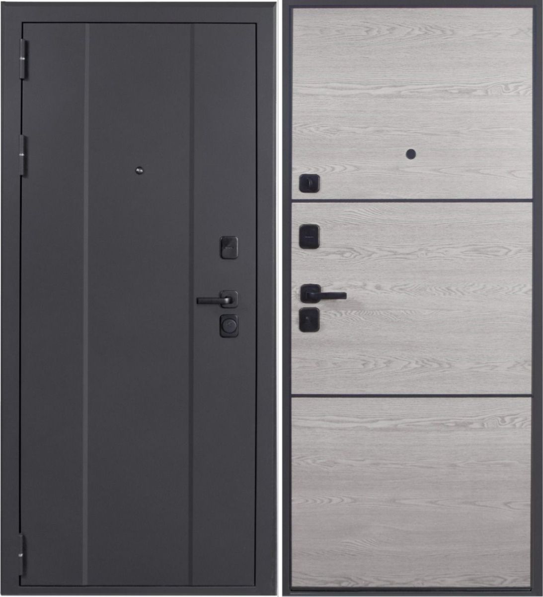 Артикул Дверь стальная Эталон М-7 Черный муар-Астана эш уайт горизонт 860 левая