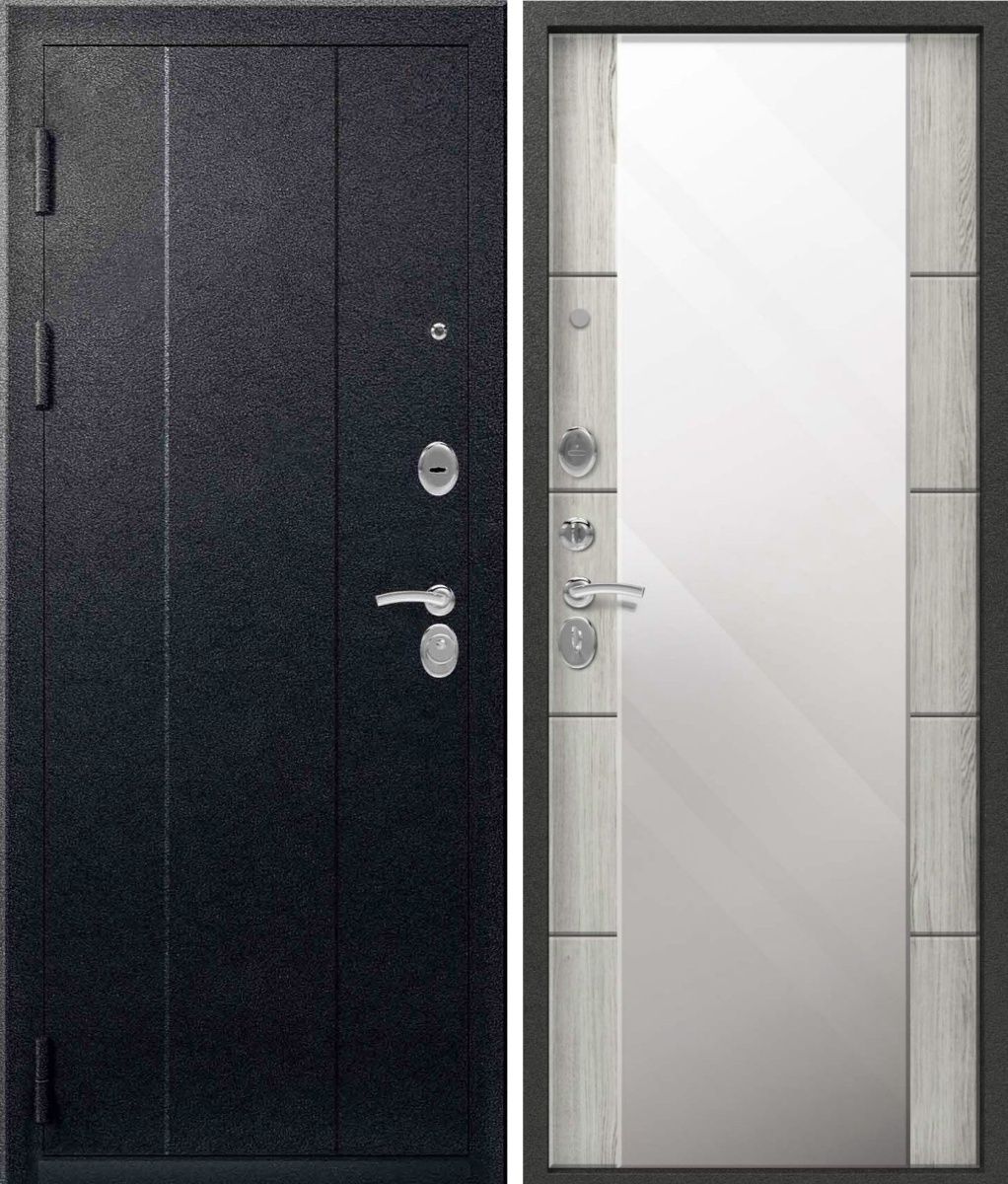 Артикул Дверь стальная Эталон Х-5 ЗЕРКАЛО Черный муар-Сосна скания милк 860 левая