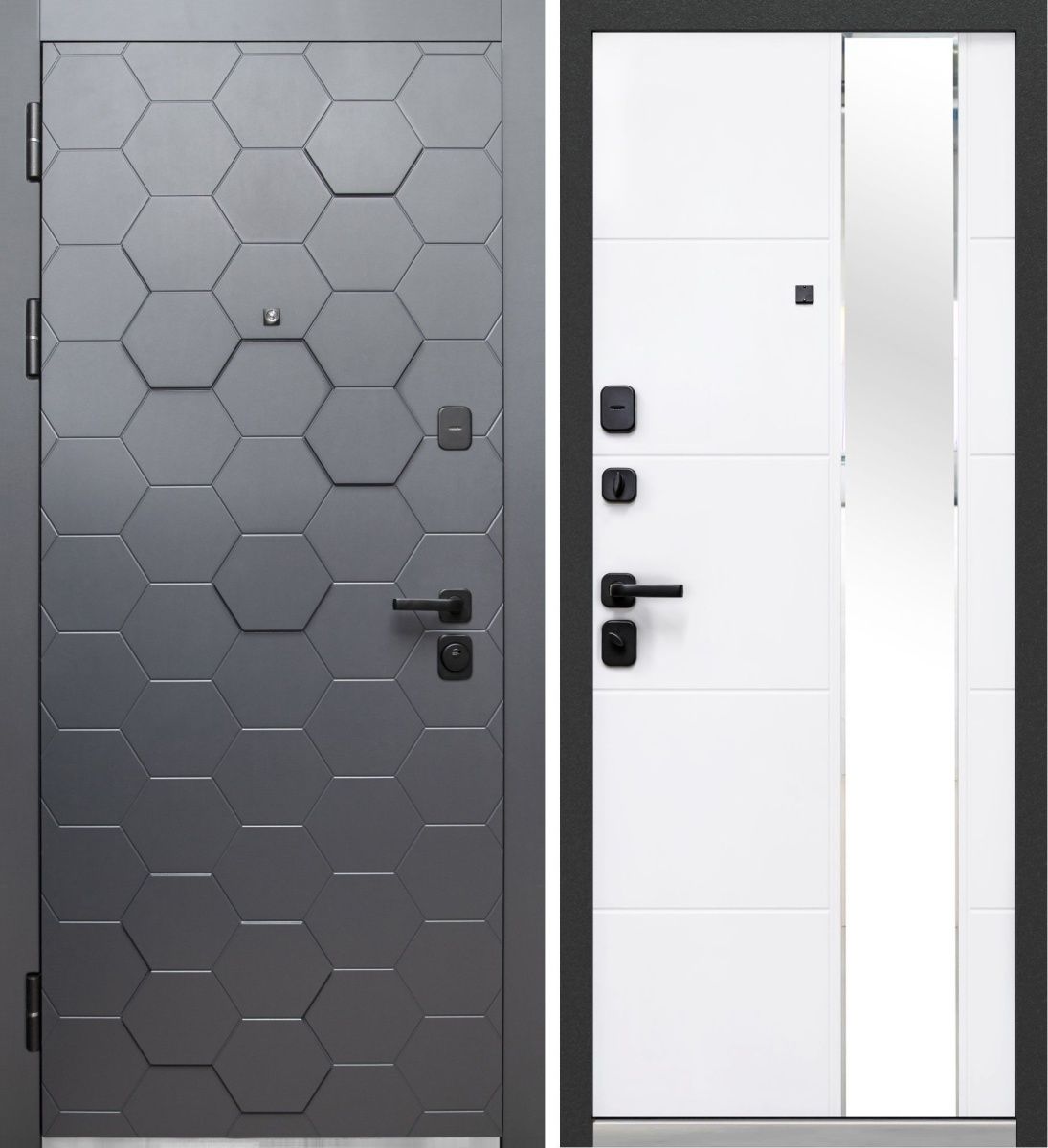 Входная дверь Люксор 2МДФ 3Д Сатин графит - Белый снег софт, накладное зеркало — купить в Иркутске в компании RosDoor (Сталь-сервис)