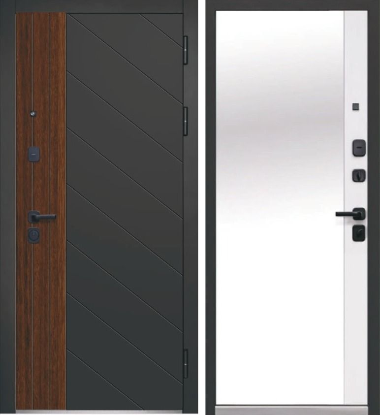 Люксор 2МДФ Диагональ Зеркало МДФ Антрацит софт/Грецкий орех - Эмалит белый со встроенным зеркалом в пол, Люксор (Luxor) — купить в г. Иркутске в компании RosDoor (Сталь-сервис)