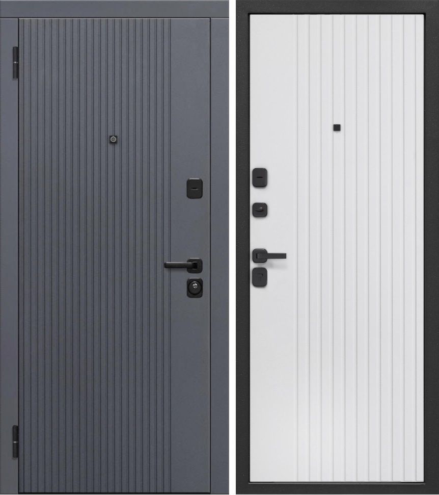 Входная дверь Люксор 2МДФ Вертикаль Сатин графит - Эмалит белый — купить в Иркутске в компании RosDoor (Сталь-сервис)