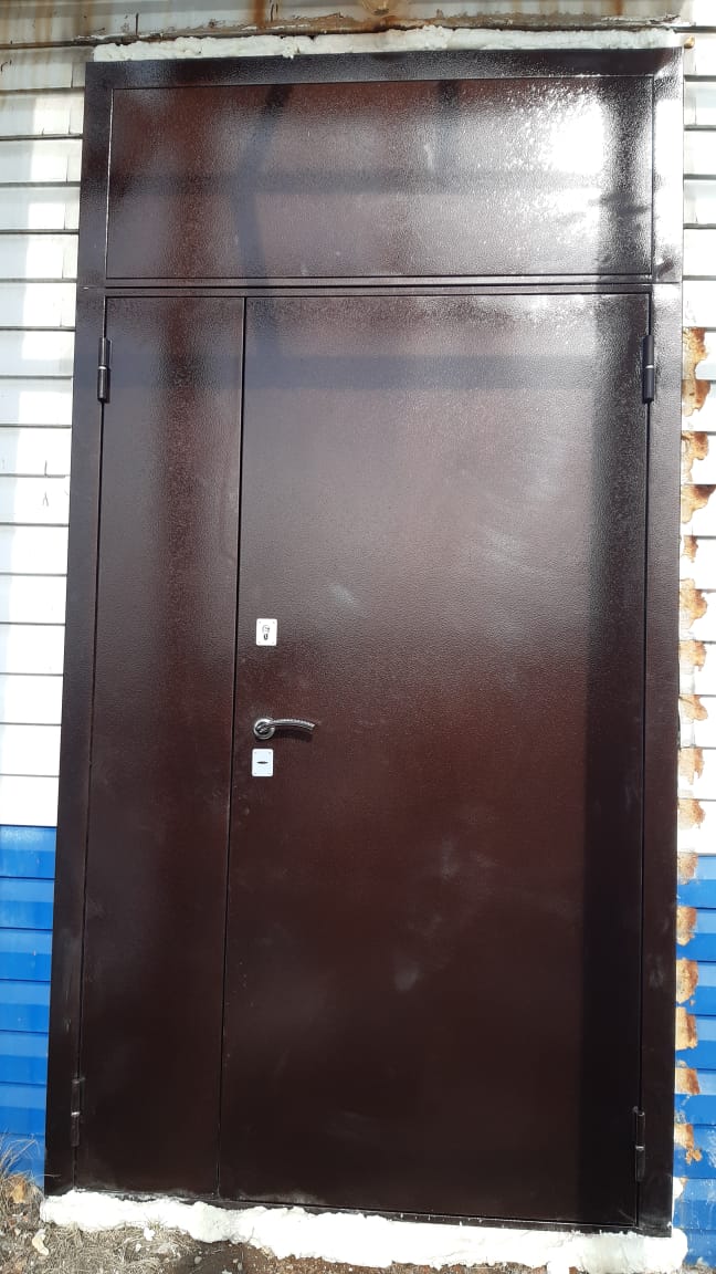 Двухстворчатая высокая уличная дверь с фрамугой, нажимная ручка (металл-металл), цена р.