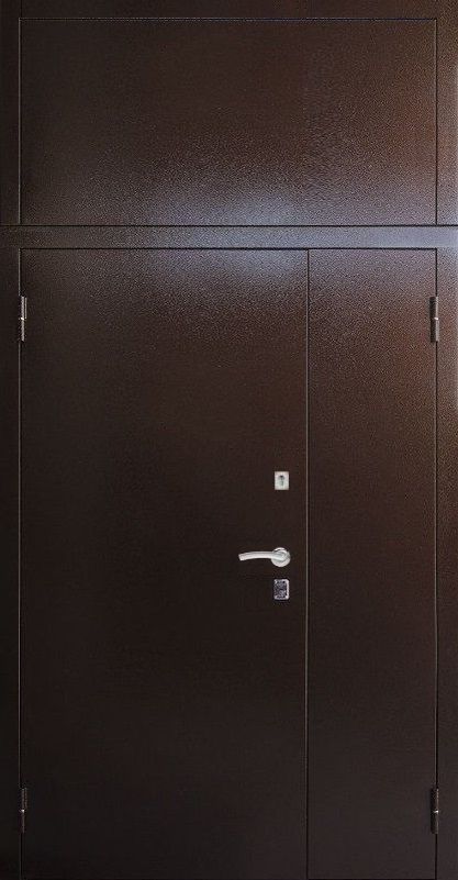 Двухстворчатая высокая уличная дверь с фрамугой, нажимная ручка (металл-металл)