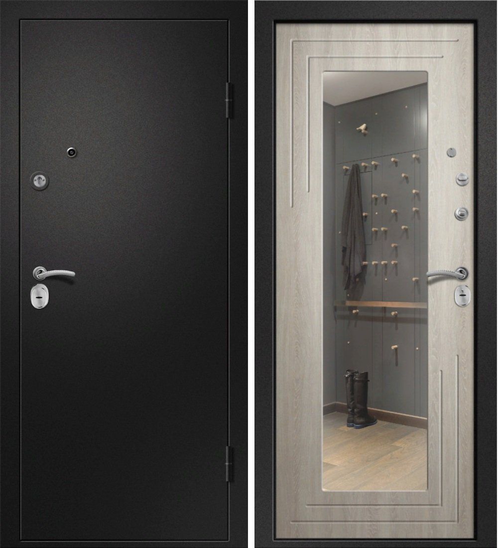 Входная дверь Ретвизан Аризона-222 Сатин черный - Филадельфия крем (зеркало) — купить в Иркутске в компании RosDoor (Сталь-сервис)