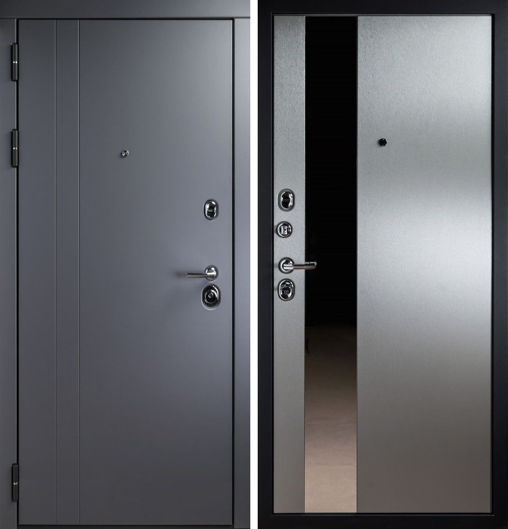 Входная дверь СТР-17 Силк Титан/Алюминий тисненый с зеркалом