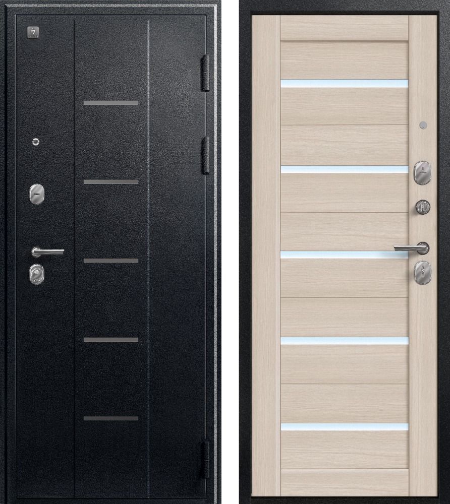 Входная дверь Центурион В-05/Х7-2024 Чёрный муар-Лиственница светлая — купить в Иркутске в компании RosDoor (Сталь-сервис)