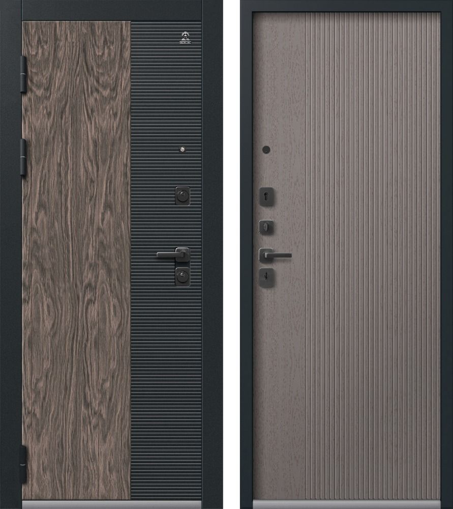 • Стальной наружный лист металла дополнен внешним накладным 10мм МДФ-щитом с фрезеровкой, придающим дополнительную прочность и максимальную шумоизоляцию, а также привлекательный внешний вид;