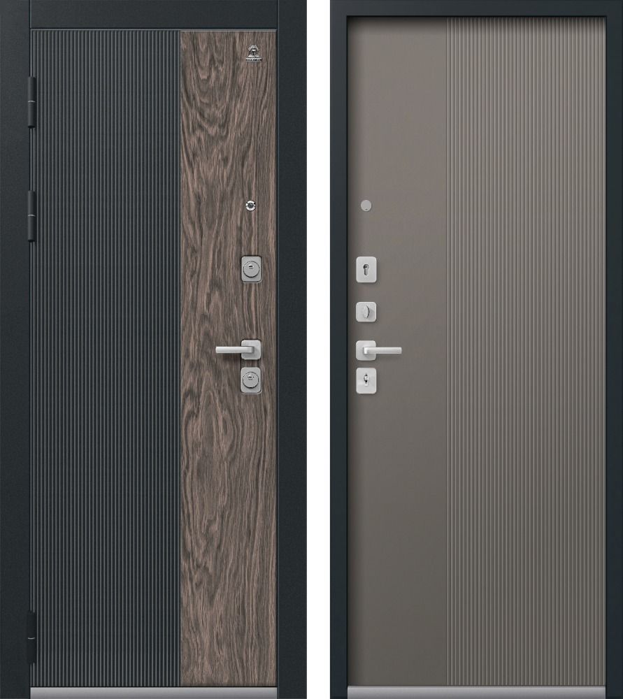 Входная дверь Центурион С-111-2025 Чёрный муар+Кварц черный+Орех Мокко - Кашемир базальт — купить в Иркутске в компании RosDoor (Сталь-сервис)