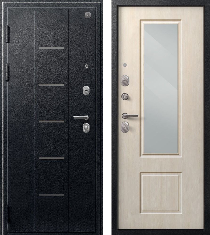 Входная дверь Центурион В-04-2024 Чёрный муар-Седой дуб (зеркало) — купить в Иркутске в компании RosDoor (Сталь-сервис)